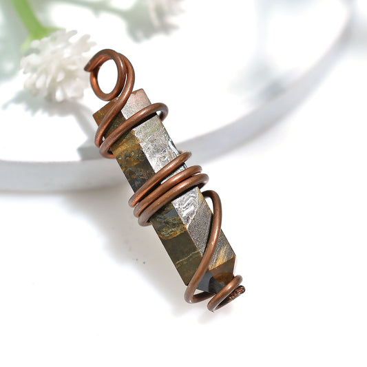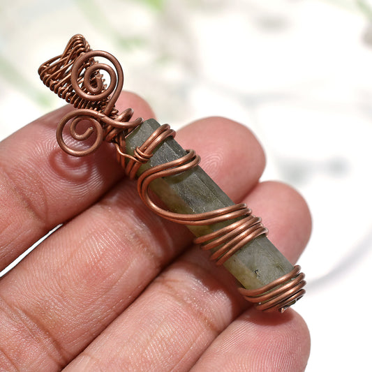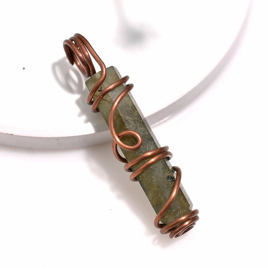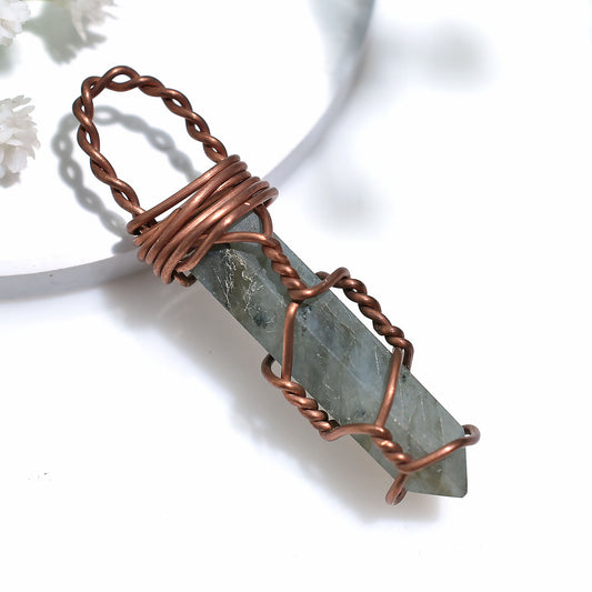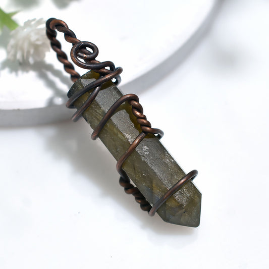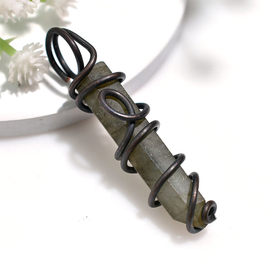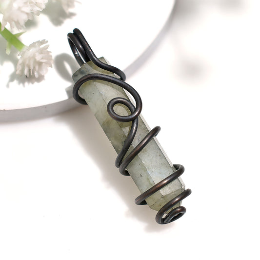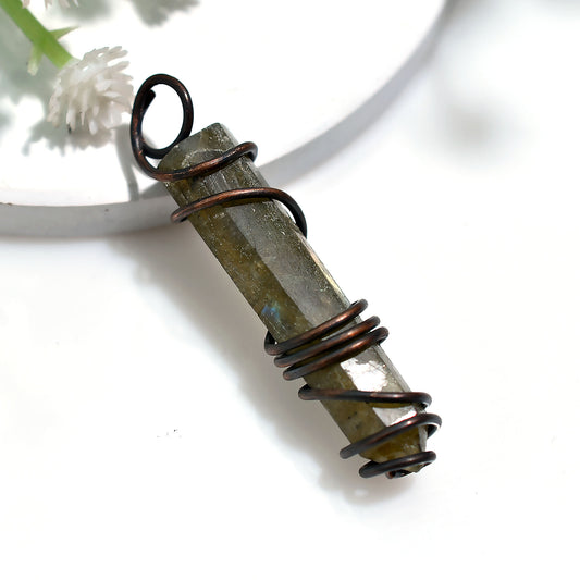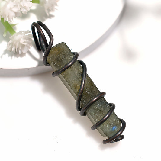 Sacred Labradorite Pencil Stone Pendant - Natural Wire Wrapped Wholesale Jewelry 37ct
