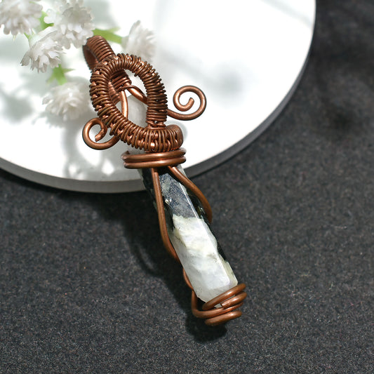Spiritual Healing Moonstone Pendant - Wire Wrapped Copper Necklace