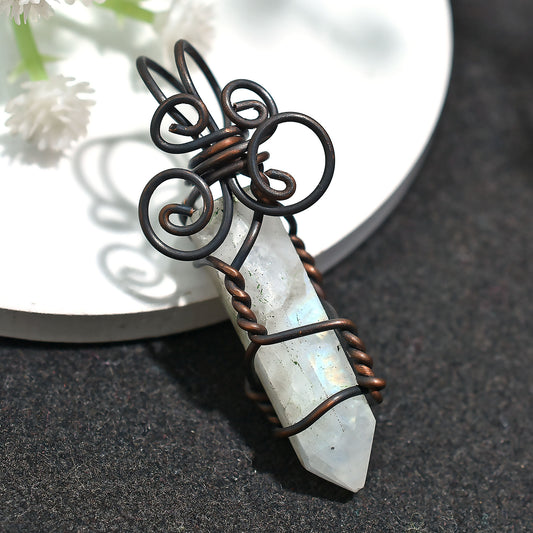 Mystical Rainbow Moonstone Pendant – Wholesale Copper Wrapped Pencil Crystal