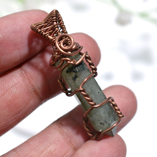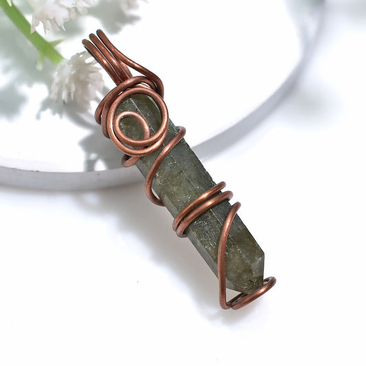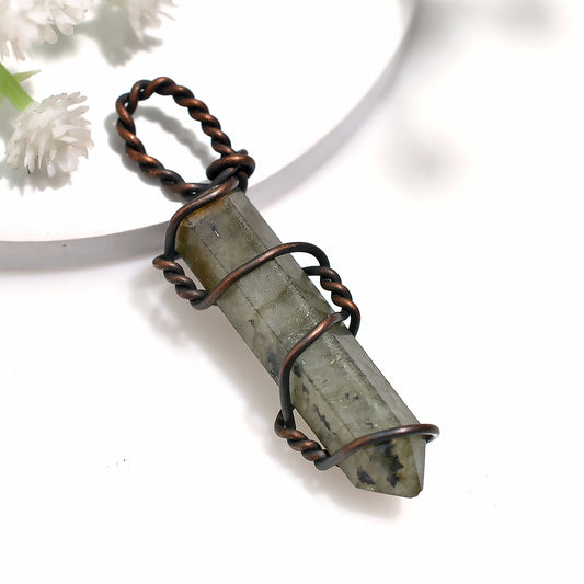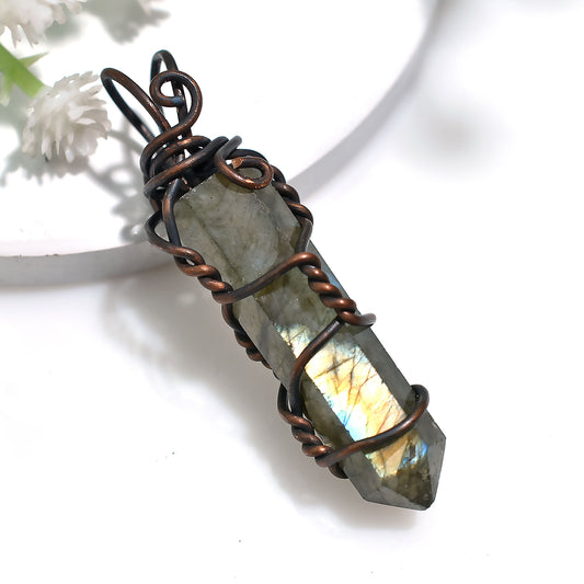 Artisan Labradorite Stone Pendant - Handcrafted in Oxidized Copper Wire Wrapped Jewelry