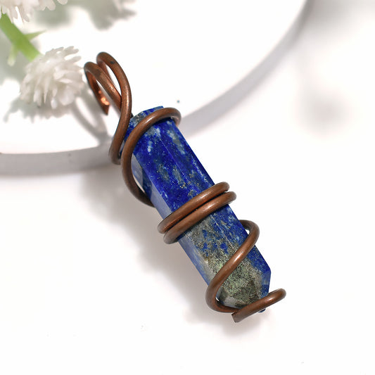 Wholesale Deep Blue Lapis Lazuli Pendant – Rustic Copper Wire Wrapped Gemstone 22ct
