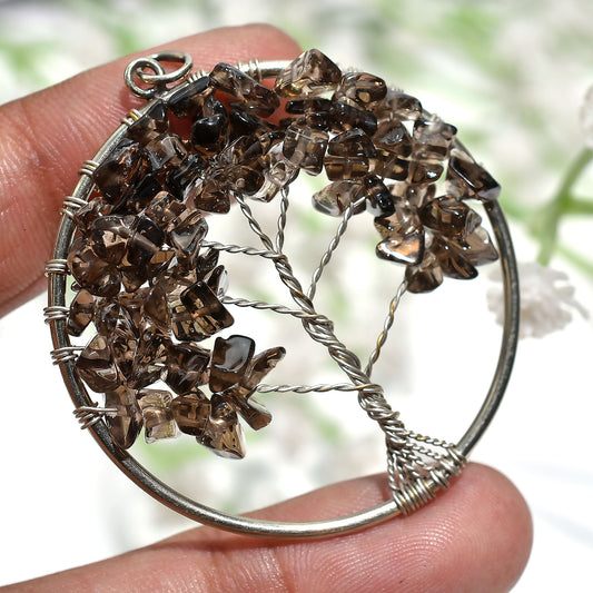 Raw Smoky Quartz Pendant – Handmade Gemstone Necklace for Energy Protection(43x50x5mm,/45ct)