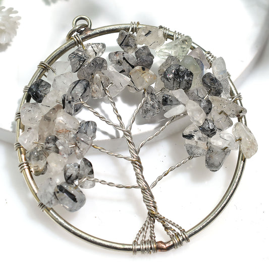 Ethereal Black Rutile Quartz Pendant – Handmade Silver Wire Wrapped Stone(42x50x5mm,/45ct)