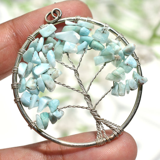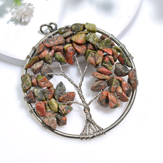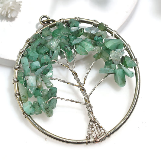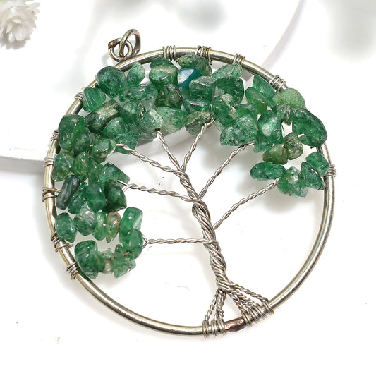 Tree of Life Aventurine Necklace – Handmade Healing Stone Crystal Pendant(40x48x5mm,/40ct )