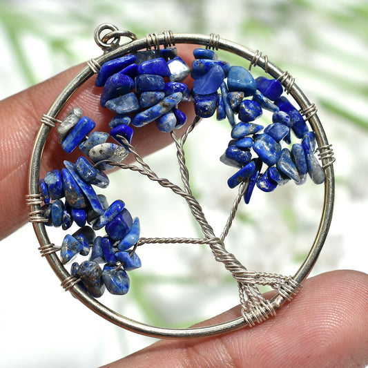 Celestial Lapis Gemstone Pendant – Handmade Wire Wrapped Jewelry Gift(41x50x5mm,/40ct)