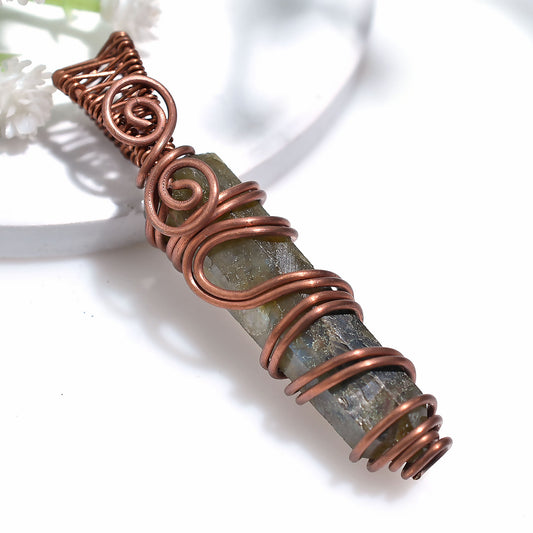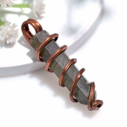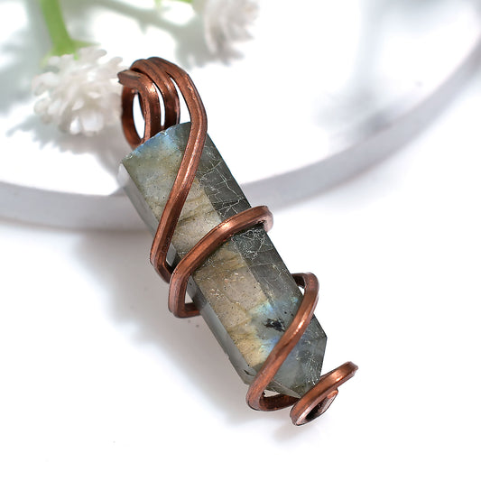Copper Wire Wrapped Labradorite Pendant – Natural Energy Stone Necklace