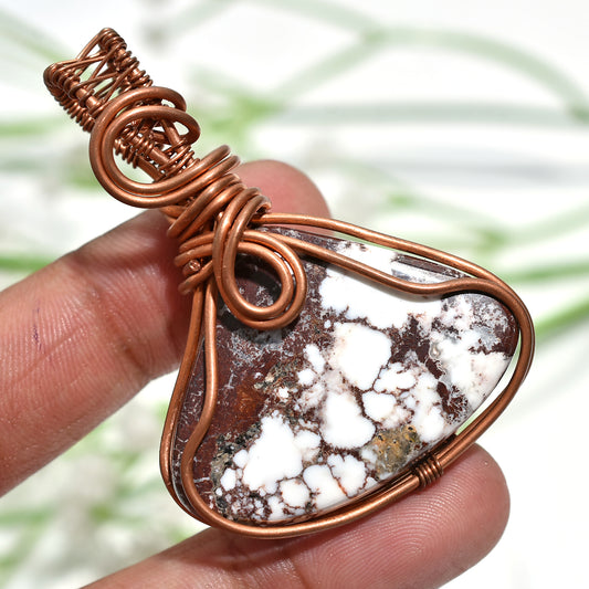 Handmade Wild Horse Jasper Pendant β Copper Wire Wrapped Gemstone Jewelry (40x55x5mm,/97ct)
