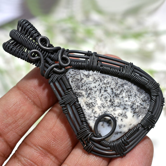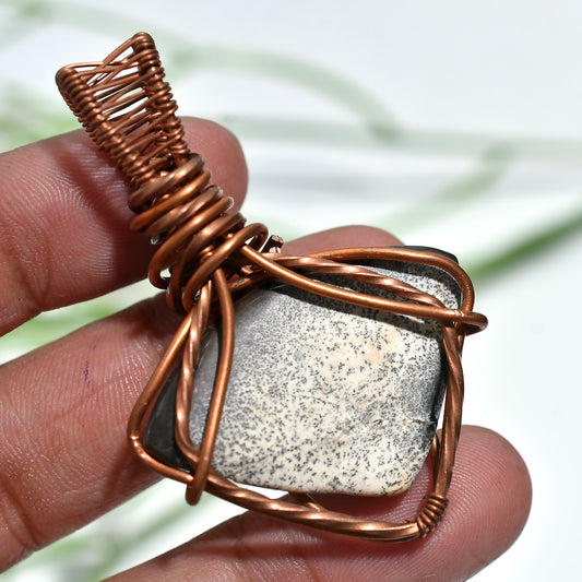 Unique Dendrite Agate Pendant β Copper Wire Wrapped Gemstone Jewelry(35x57x5mm,/57ct)