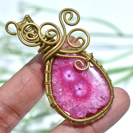 Handcrafted Solar Quartz Pendant β Golden Wire Wrapped Statement Pink Gemstone Jewelry(20x40x6mm,/41ct)