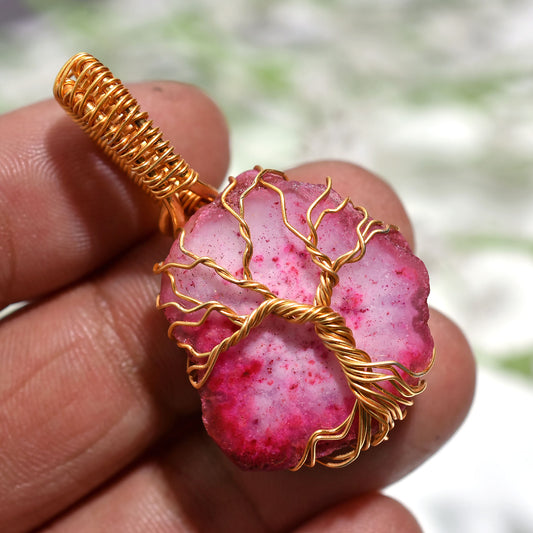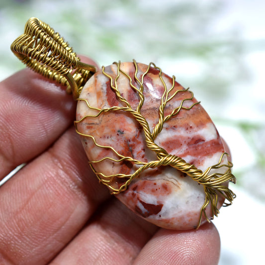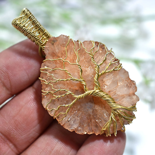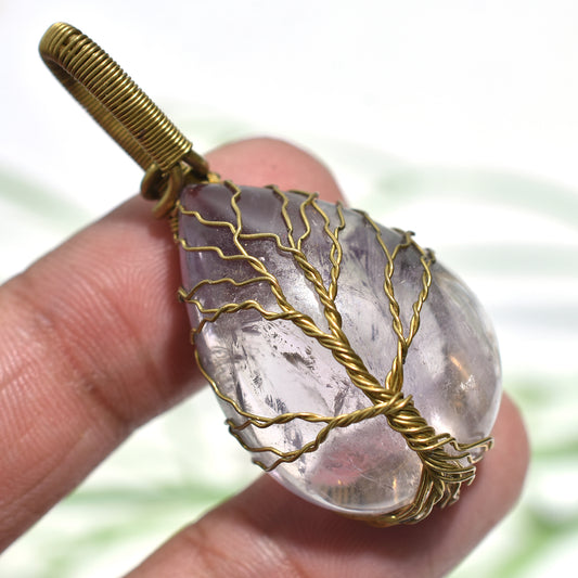 Awesome Rose Quartz Wire Wrapped Tree Pendant β Handmade Stone Jewellery
