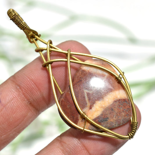 Wholesale Rosetta Jasper Pendant β Golden Wire Wrapped Stone Jewelry (25x50x6mm,/56ct)