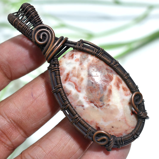 Trendy Rosetta Jasper Pendant β Oxidise Copper Wire Wrapped Stone Jewelry (30x68x7mm,/128ct)