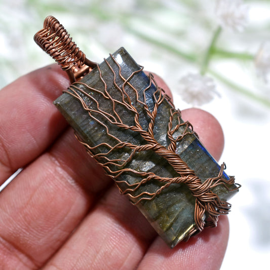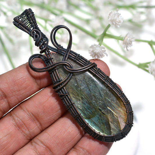 Attractive Labradorite Pendant β Oxidise Copper Wire Wrapped Stone Jewelry (28x81x6mm,/99ct)