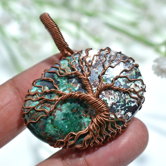 Stunning Chrysocolla Copper Wire Wrapped Pendant - Handemade Stone Necklace Jwellery(40x47x6mm,/110ct)