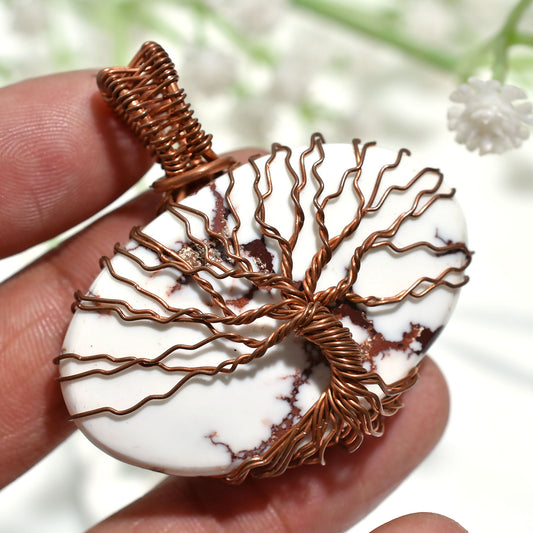 Handmade Maligano Jasper Wire-Wrapped Tree of Life Pendant β Unique Boho Jewelry(45x50x6mm,/102ct)