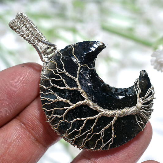 Trendy Black OpaliteTree of Life Pendant β Silver Wire Wrapped Gemstone(30x55x5mm,/55ct)