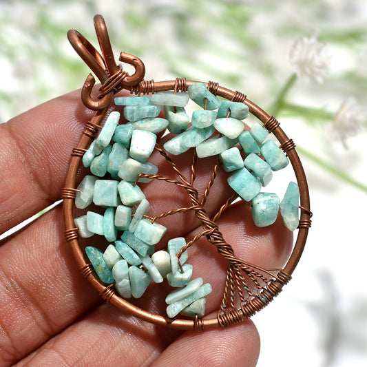 Gorgeous Amazonite Pendant - Copper Wire Wrapped Tree of Life Designer Gemstone Jewelry (41x55x5mm,/51ct )