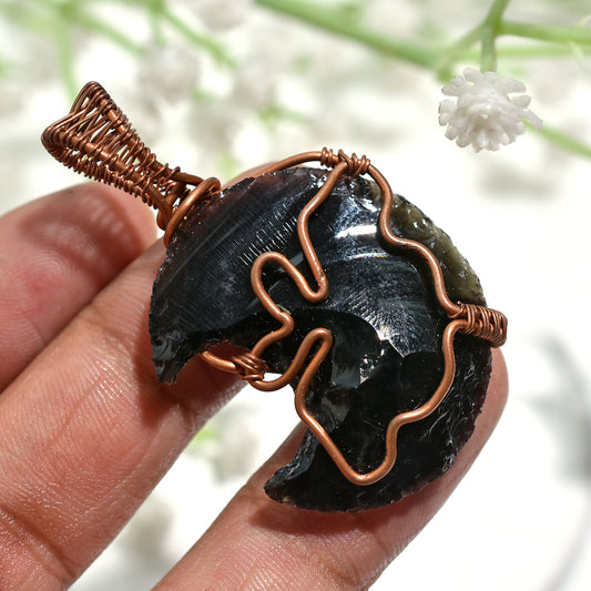 Elegant Black Opalite Crescent Moon Gemstone Pendant Copper Wire Wrapped Crystal(25x50x5mm,/48ct)