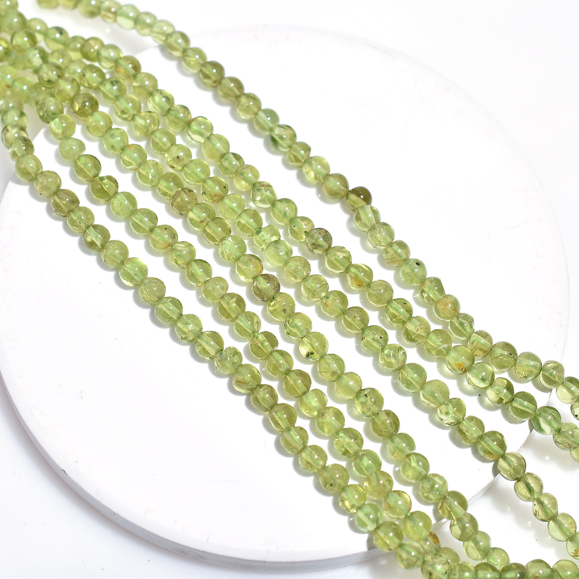 High-quality Peridot beads 4mm round. Handmade natural green gemstone beads perfect for necklaces, bracelets, and crystal jewelry designs.