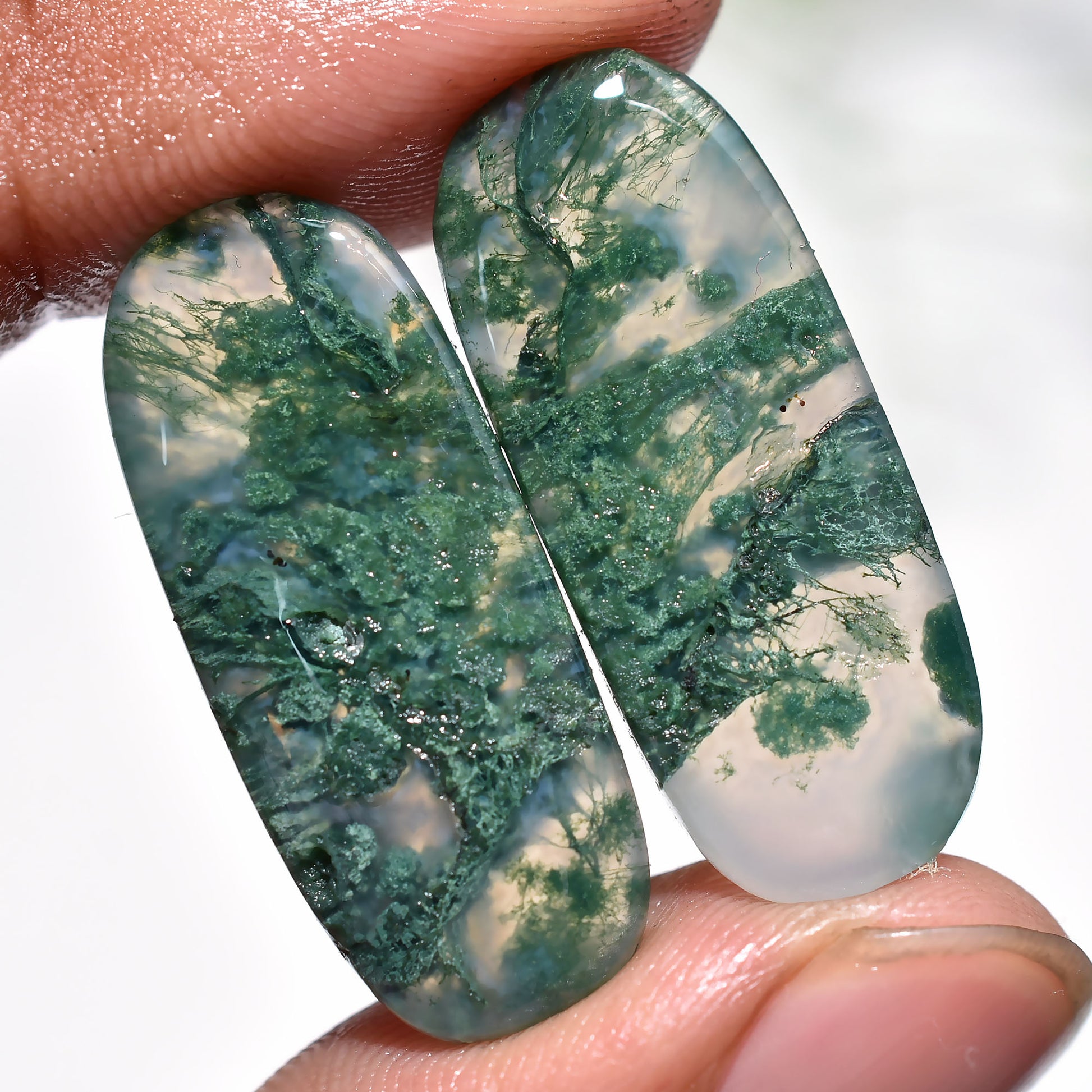 AAA Quality Moss Agate Gemstone Pair – Smooth Oval Cabochons for Custom Jewelry