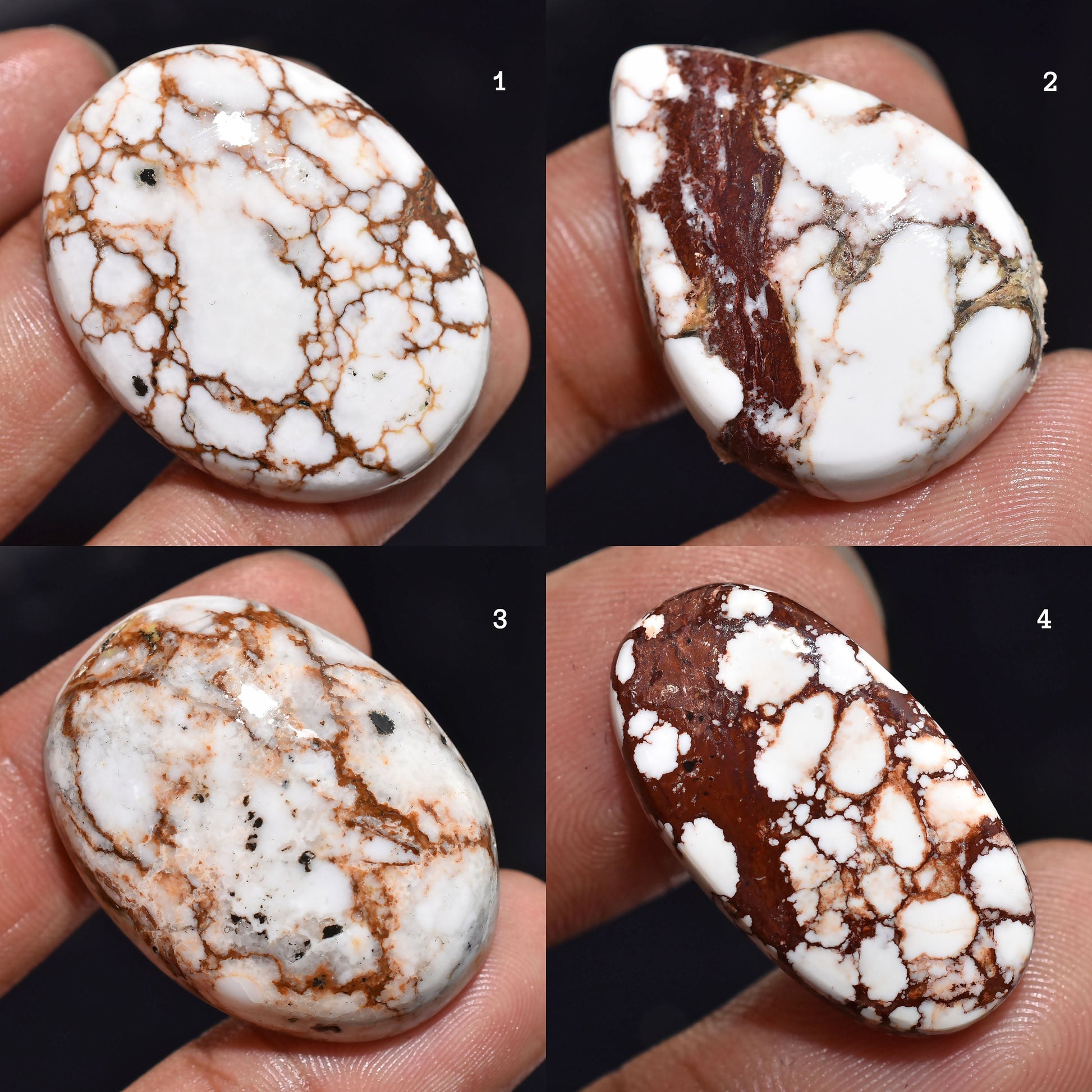 Discover the beauty of AAA Wild Horse Gems, a stunning natural gemstone known for its striking patterns of creamy white, rich brown, and deep burgundy hues. These wholesale flat back cabochons are perfect for jewelry makers and designers looking to create unique pendants