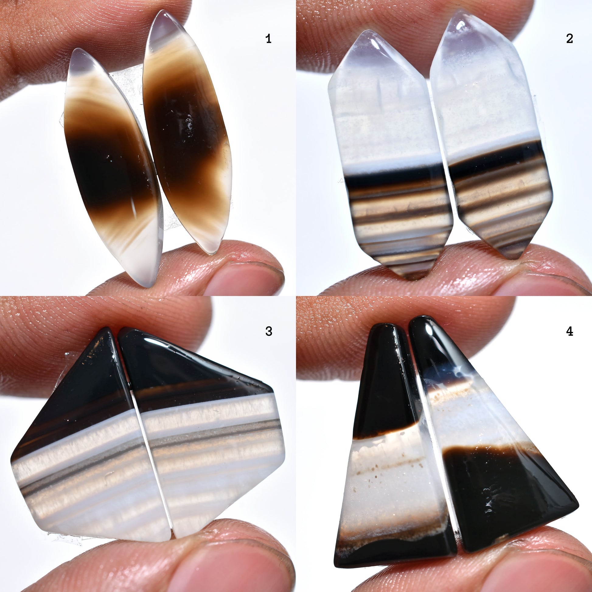 Elegant Black Banded Agate Matched Pair – Perfect for Jewelry Designs