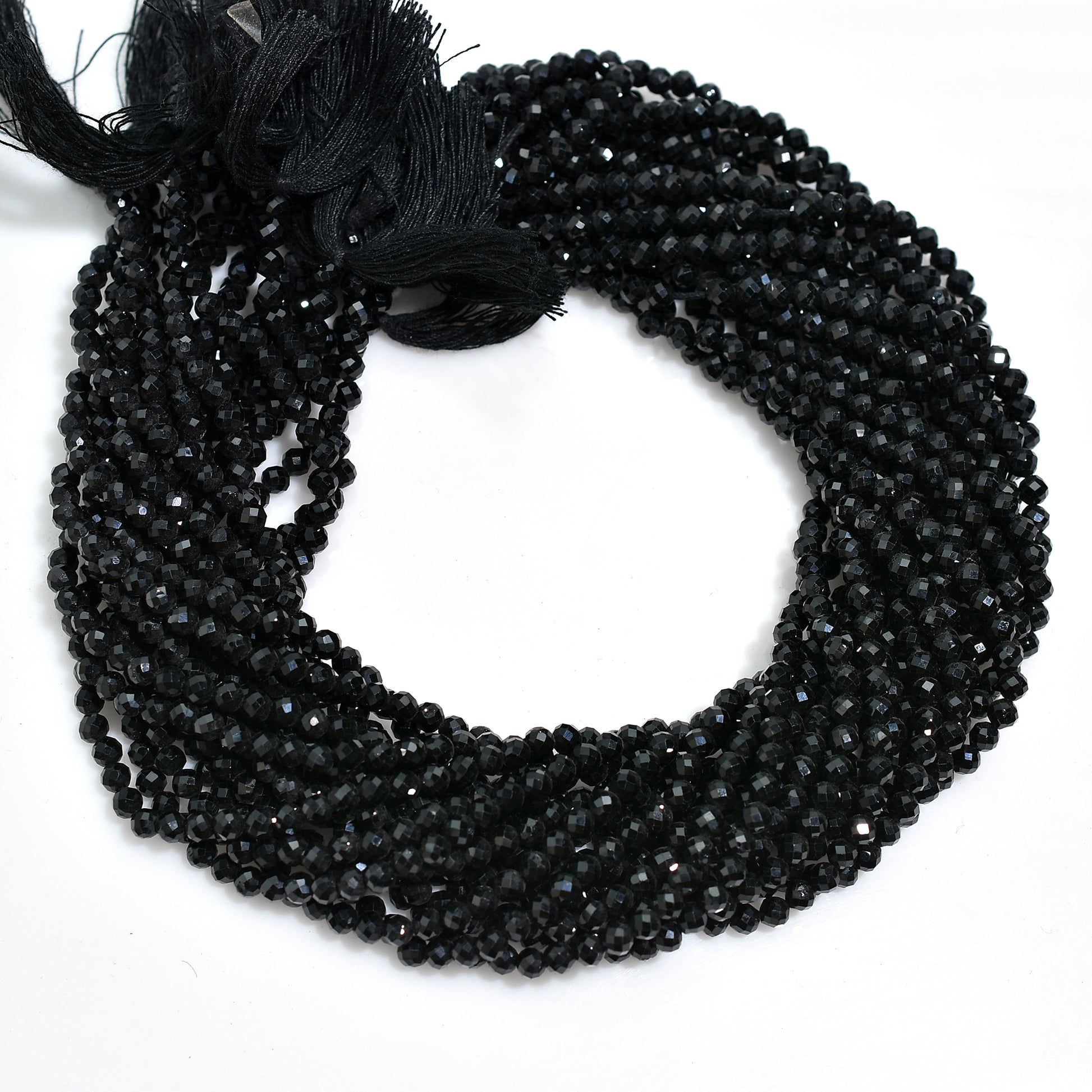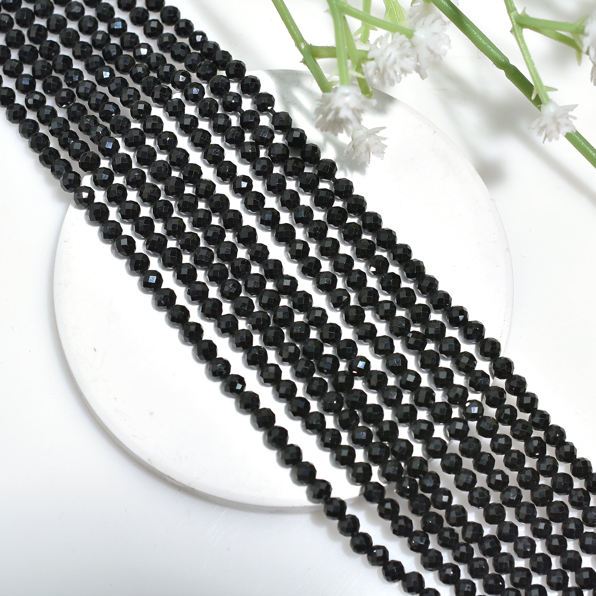 Black Spinel Micro Cut Faceted Round Beads – 12 Inch Strand Natural Wholesale Gemstone Beads For Jewelry Design