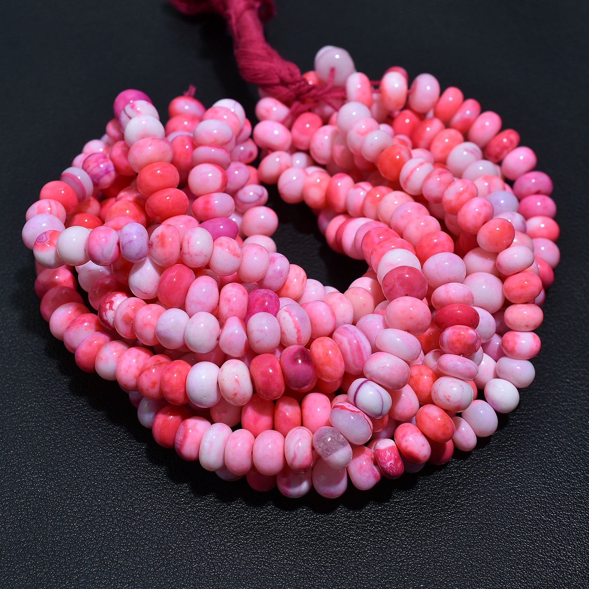 Shop premium-quality Pink Opal Rondelle Beads in a 16-inch strand. Smooth, polished and naturally vibrant, ideal for jewelry designers and craft enthusiasts.