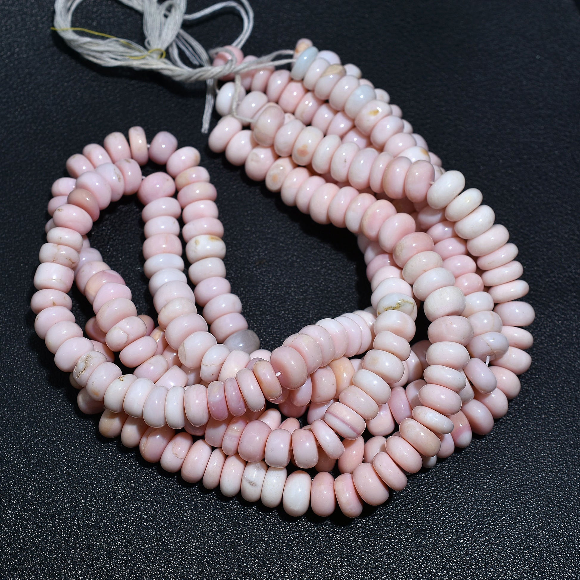 Shop Natural Pink Opal Rondelle Beads in soft blush tones. This 15 inch strand features smooth, polished beads ideal for creating elegant necklaces, bracelets, and earrings.