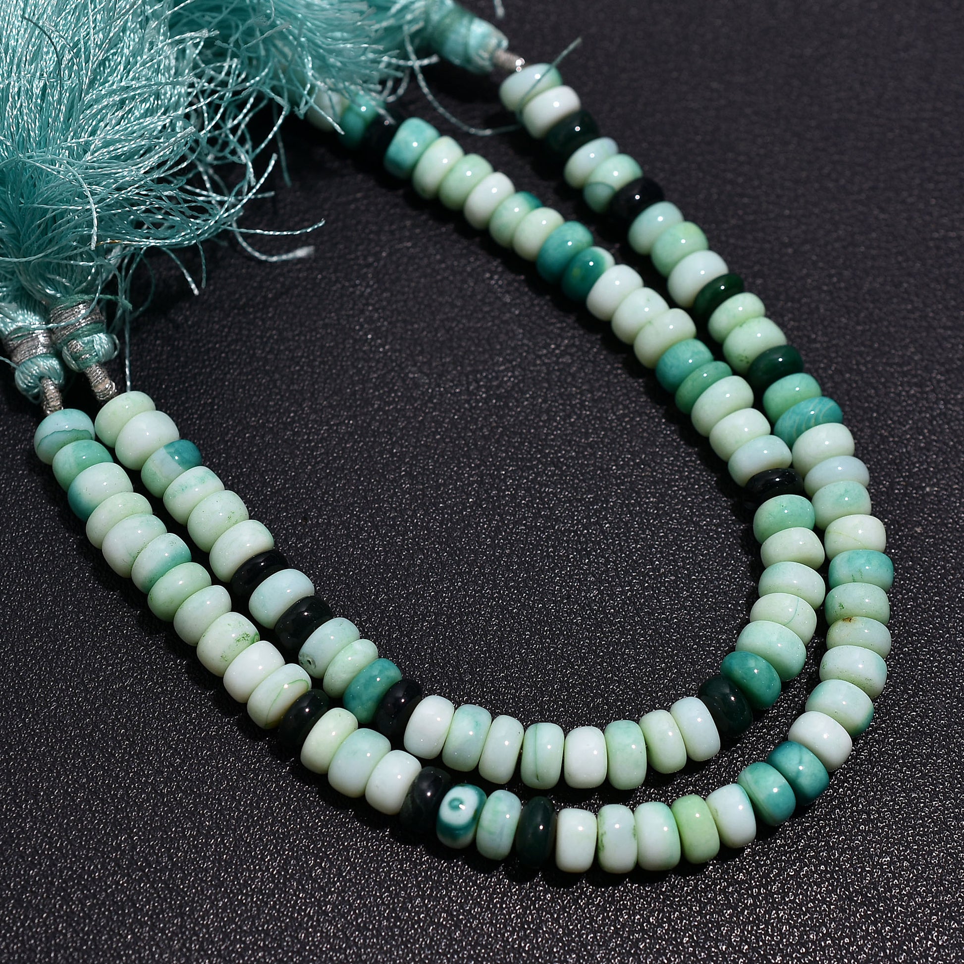 Discover our 7 inch strand of natural green opal rondelle beads. Featuring calming mint to deep green hues, these polished gemstones are ideal for jewelry making and healing.