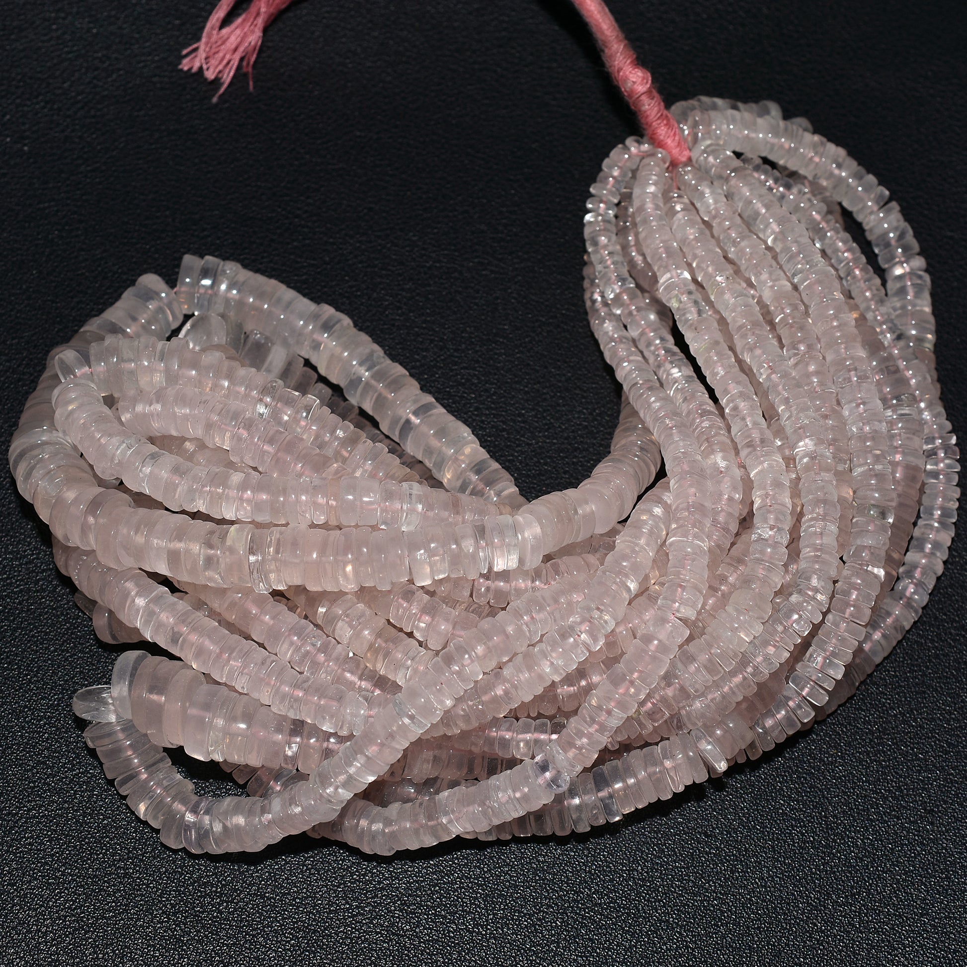 Elegant Heishi Tyre Rose Quartz Beads – Natural Pink Gemstone Disc Beads For Jewelry
