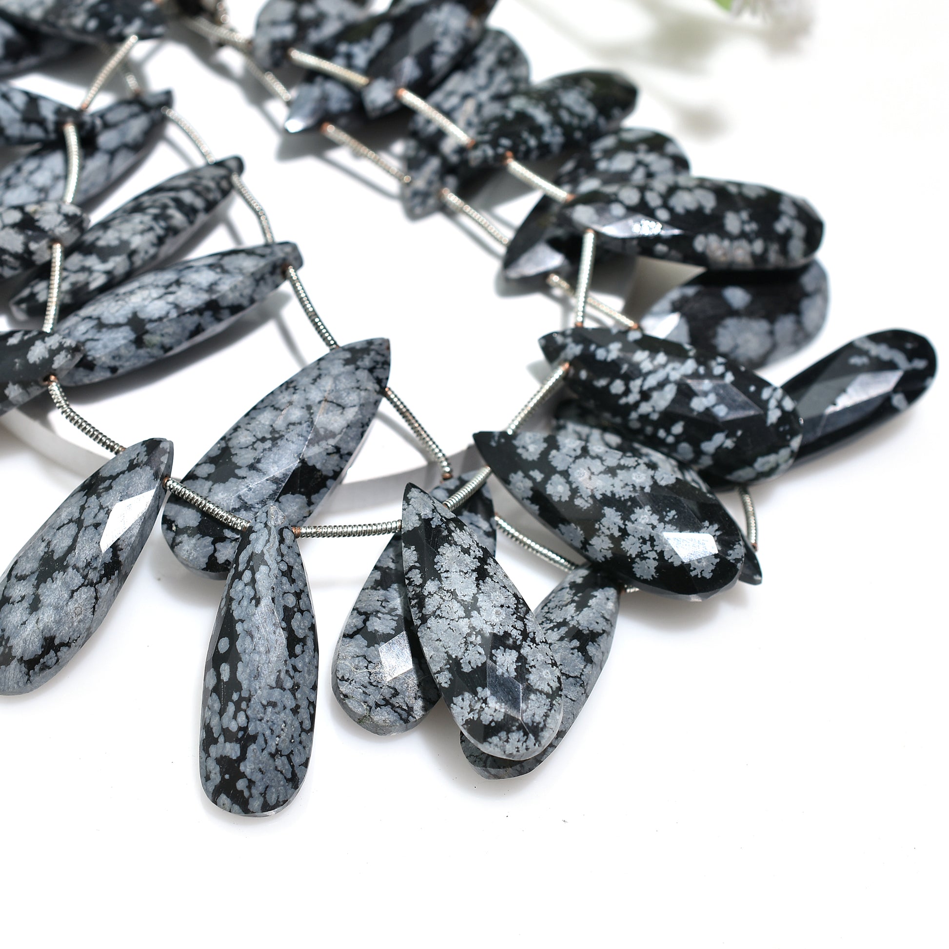 Elegant Snowflake Obsidian Faceted Drops – Pear-Shaped Gemstone Beads for DIY Jewelry