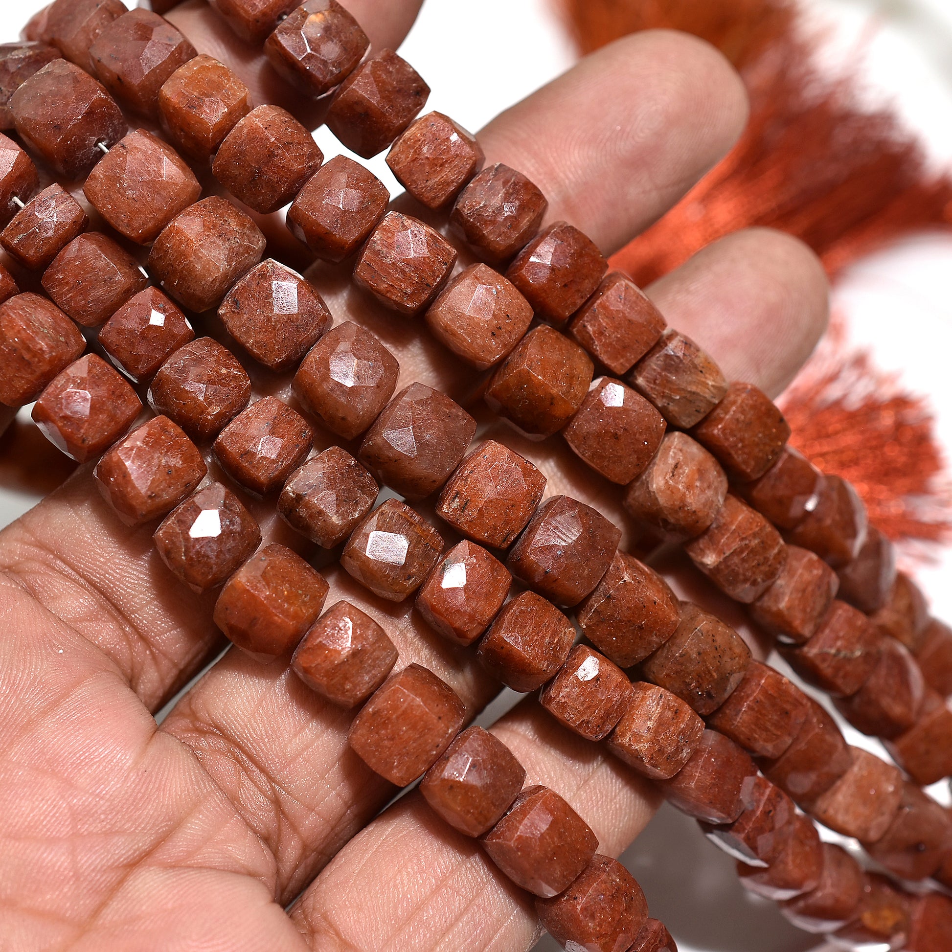 Elegant Sunstone Faceted Cube Gemstone Beads – 8 Inch Wholesale Strand For Custom Jewelry Design