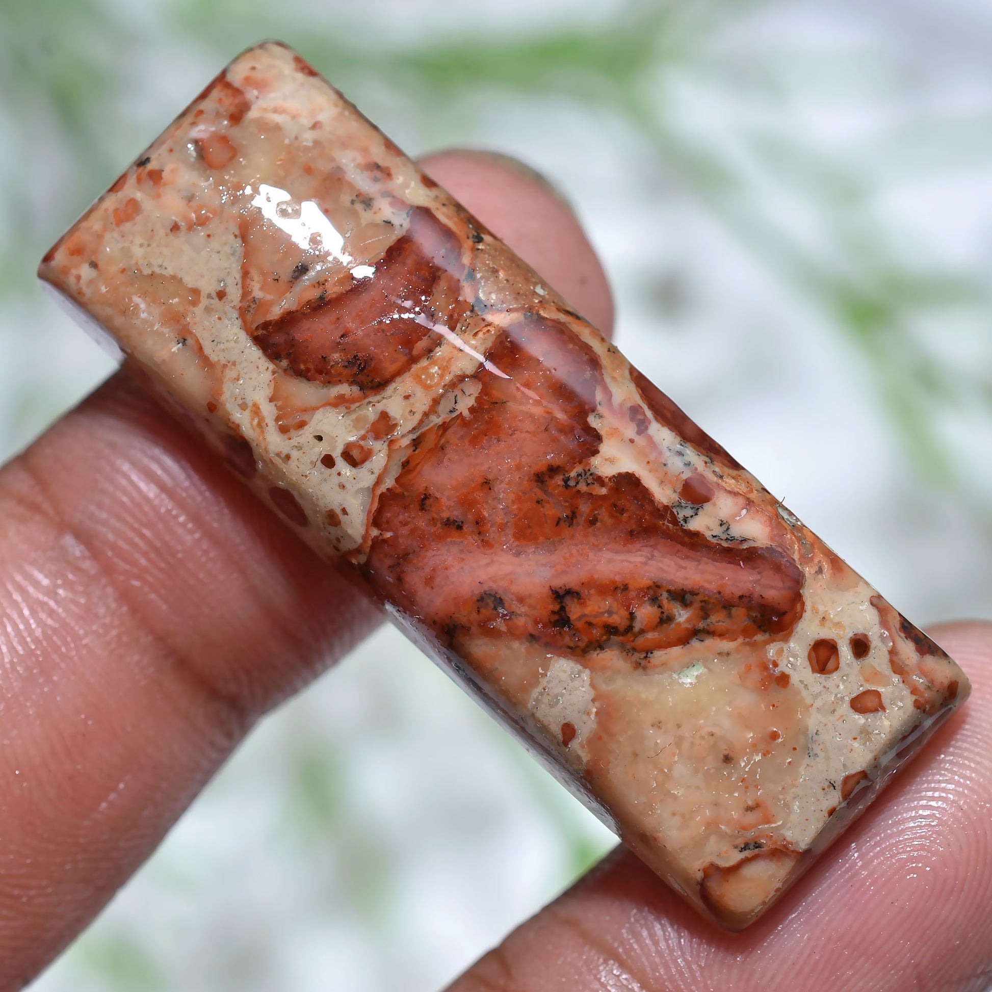 Discover our unique fancy-shaped Asteroid Jasper cabochon, a smooth polished natural stone with a flat back, perfect for pendants and custom jewelry. Available at wholesale prices for jewelry makers and collectors