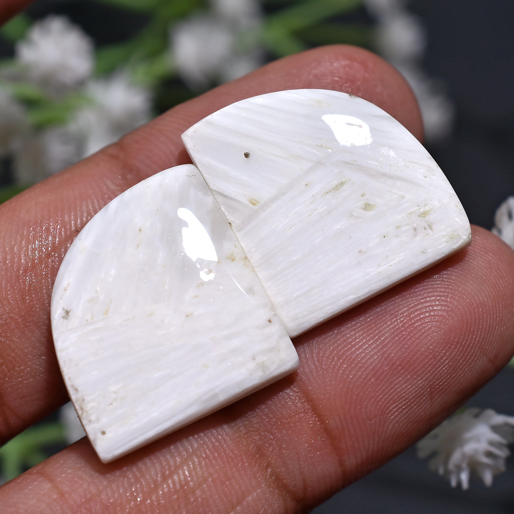 Shop unique Fancy Shaped Scolecite Cabochon Pair, ideal for making designer earrings and healing jewelry. Naturally white with intricate patterns and smooth finish. Perfect for crystal collectors and jewelry makers.