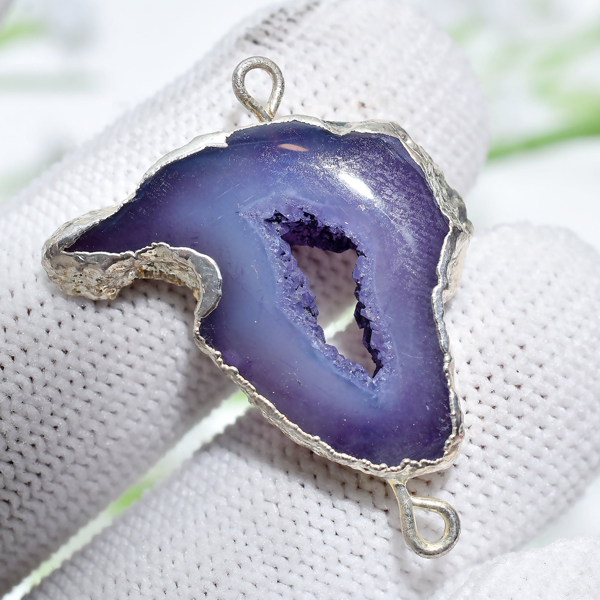 Geode Druzy Charm Connectors - Silver Electroplated Double Bail for DIY
