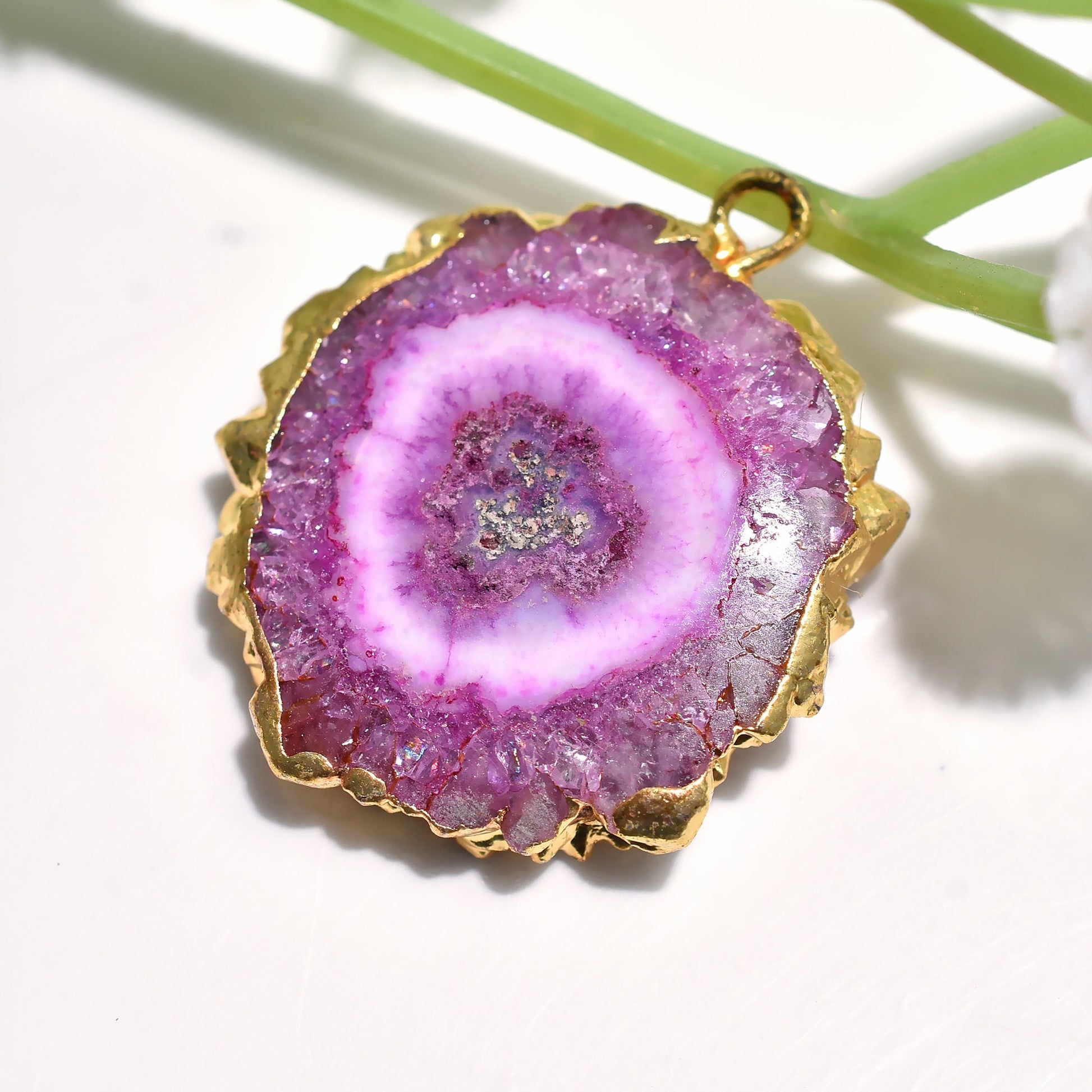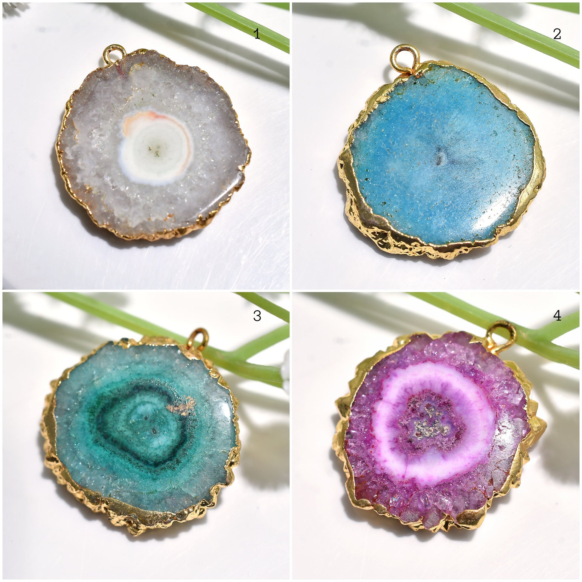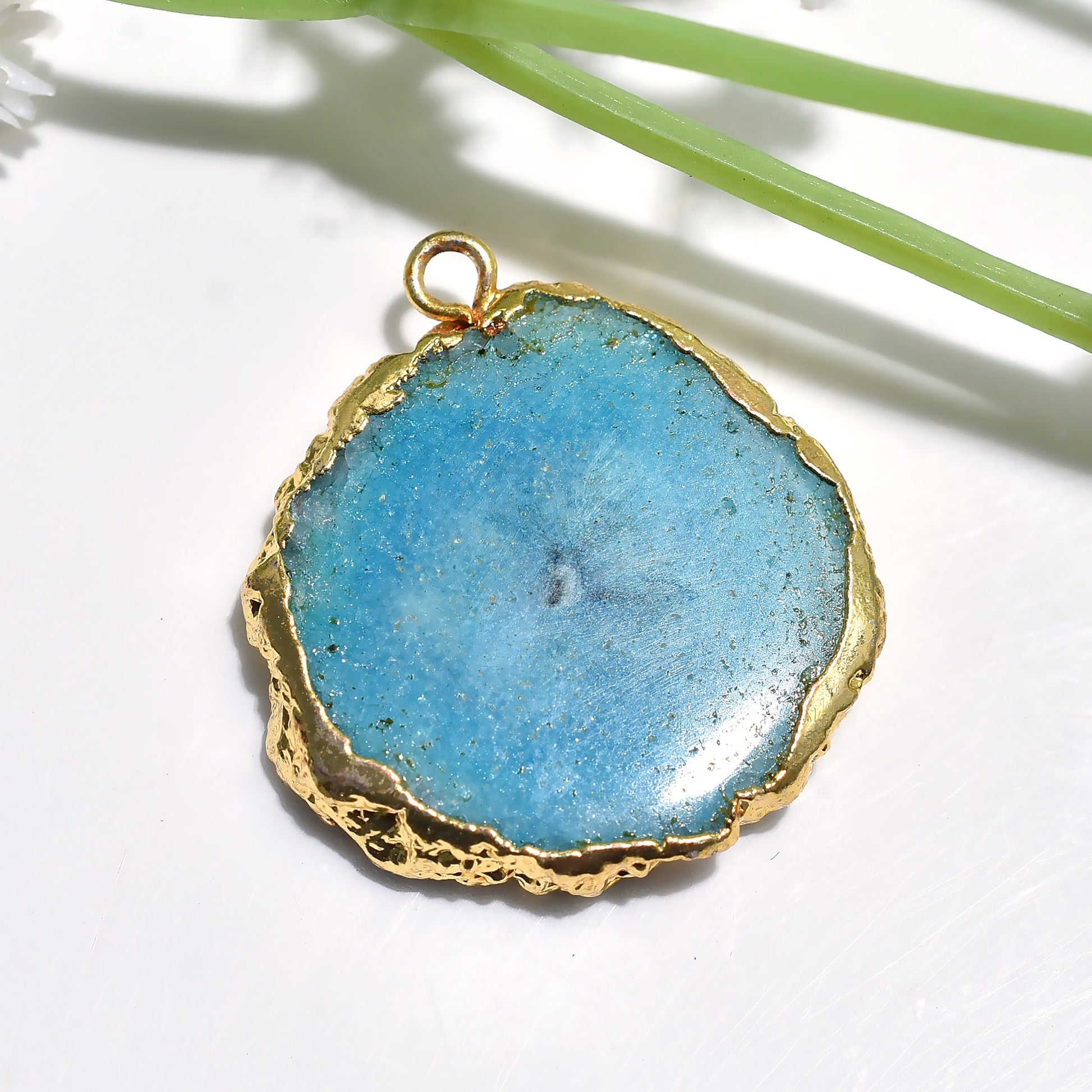 Explore gold electroplated Solar Quartz pendants in fancy shapes. Ideal for DIY necklace creations and artisanal gifts. Perfect for adding elegance to your jewelry designs.