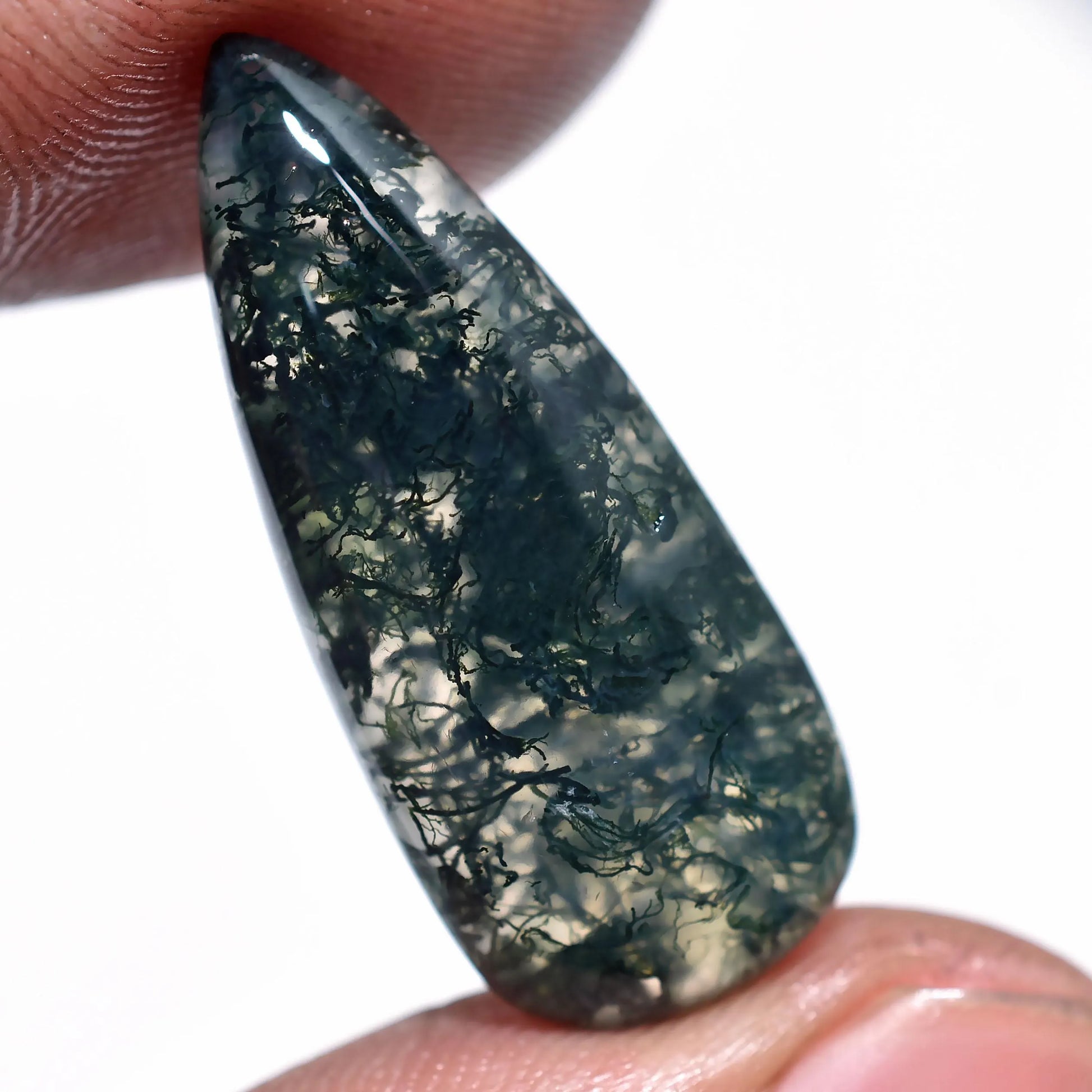 Shop natural dark green moss agate cabochons in oval and pear shapes. These polished, flat-back gemstones are perfect for custom jewelry making, including pendants and earrings.