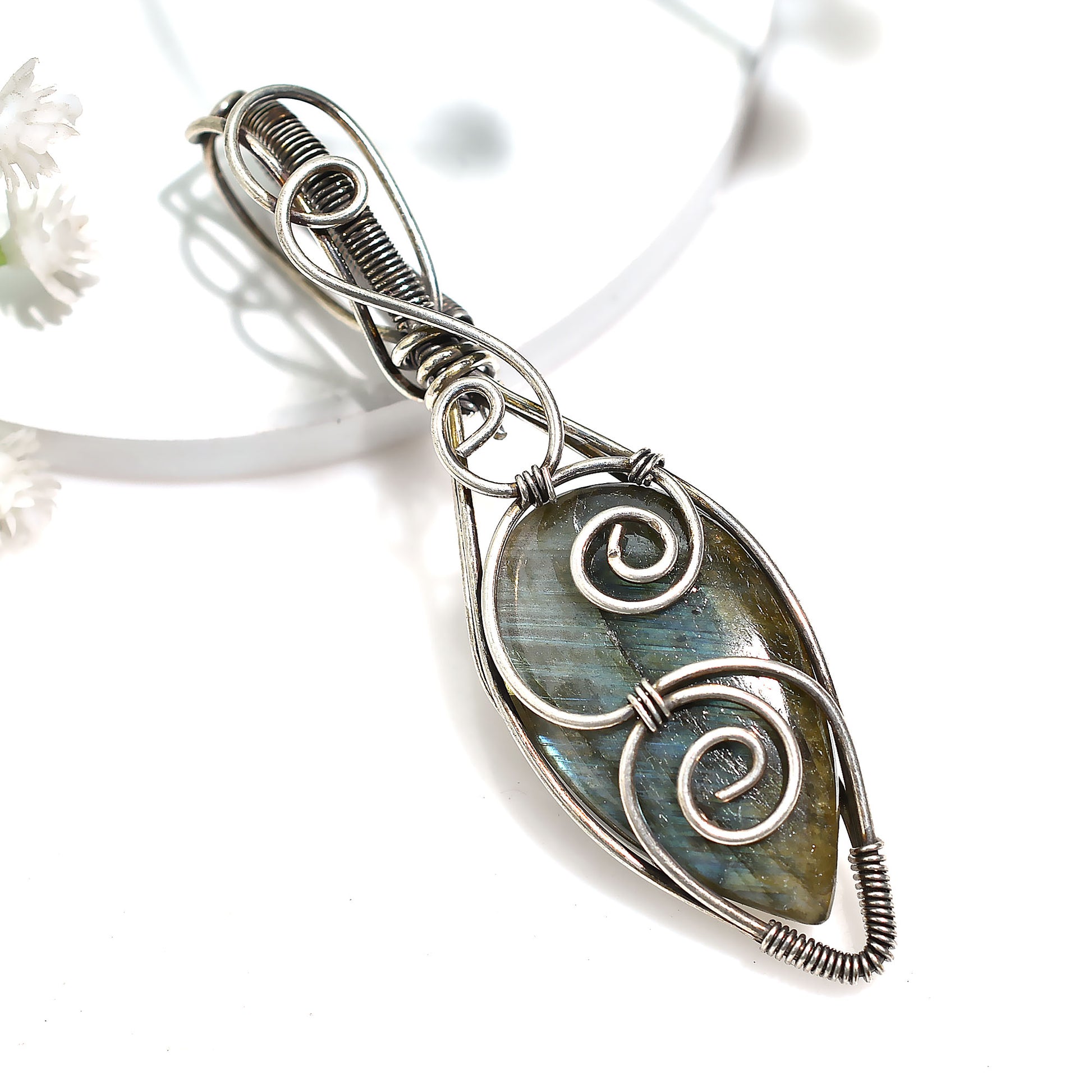 Handmade Labradorite Necklace – Silver Wire Wrapped Swirl Design Wholesale Gemstone Pendant