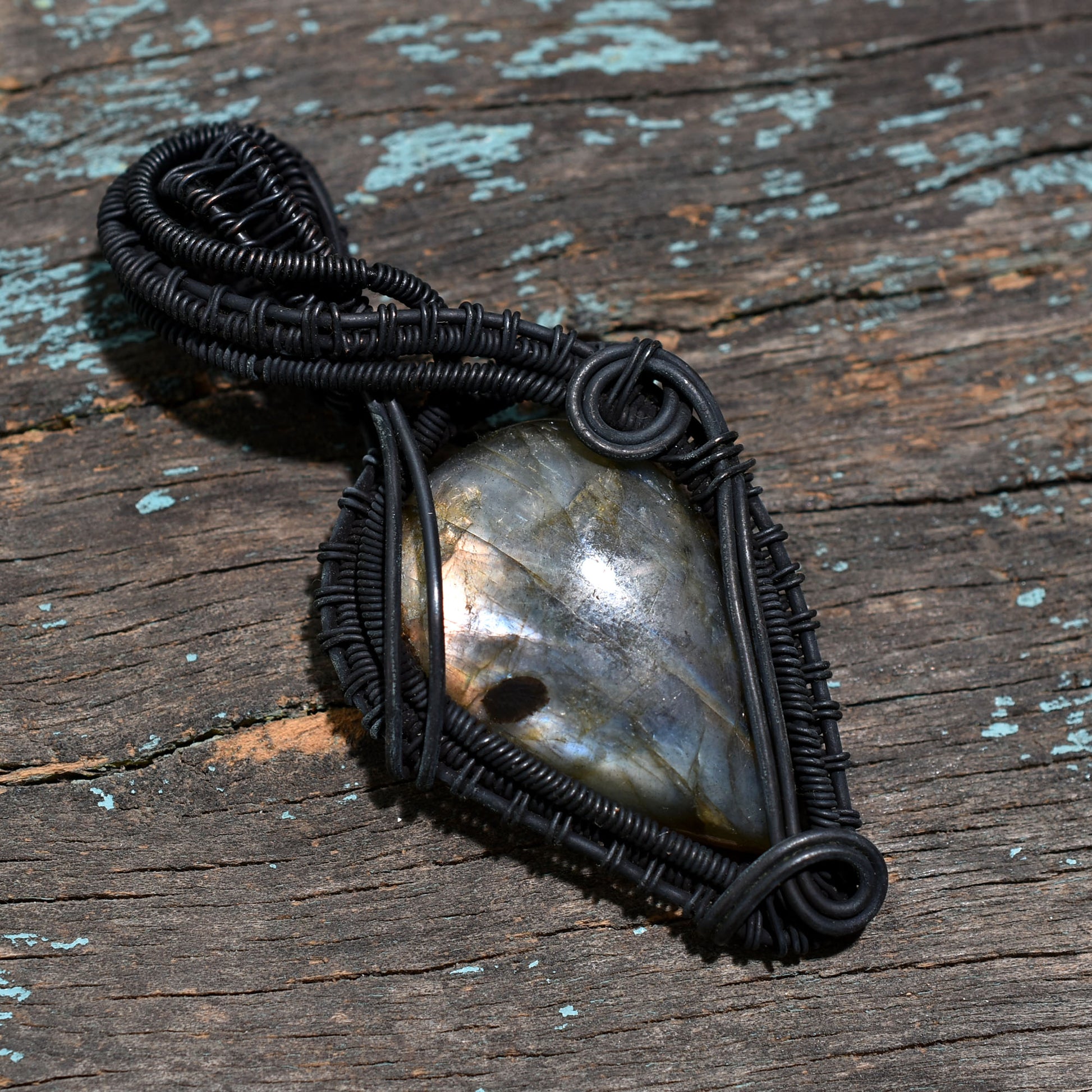Handmade Labradorite Pendant Polished Flash Stone for Wholeasale Copper Wire Wrapped Jewelry