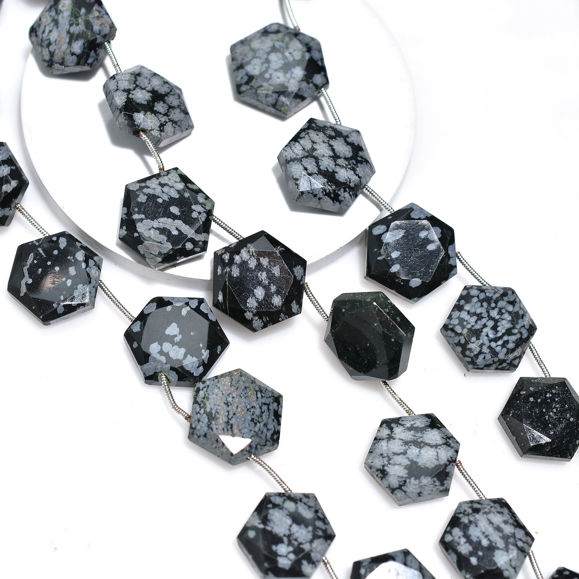 Hexagon Cut Snowflake Obsidian Beads – Black & White Natural Wholesale Gemstones