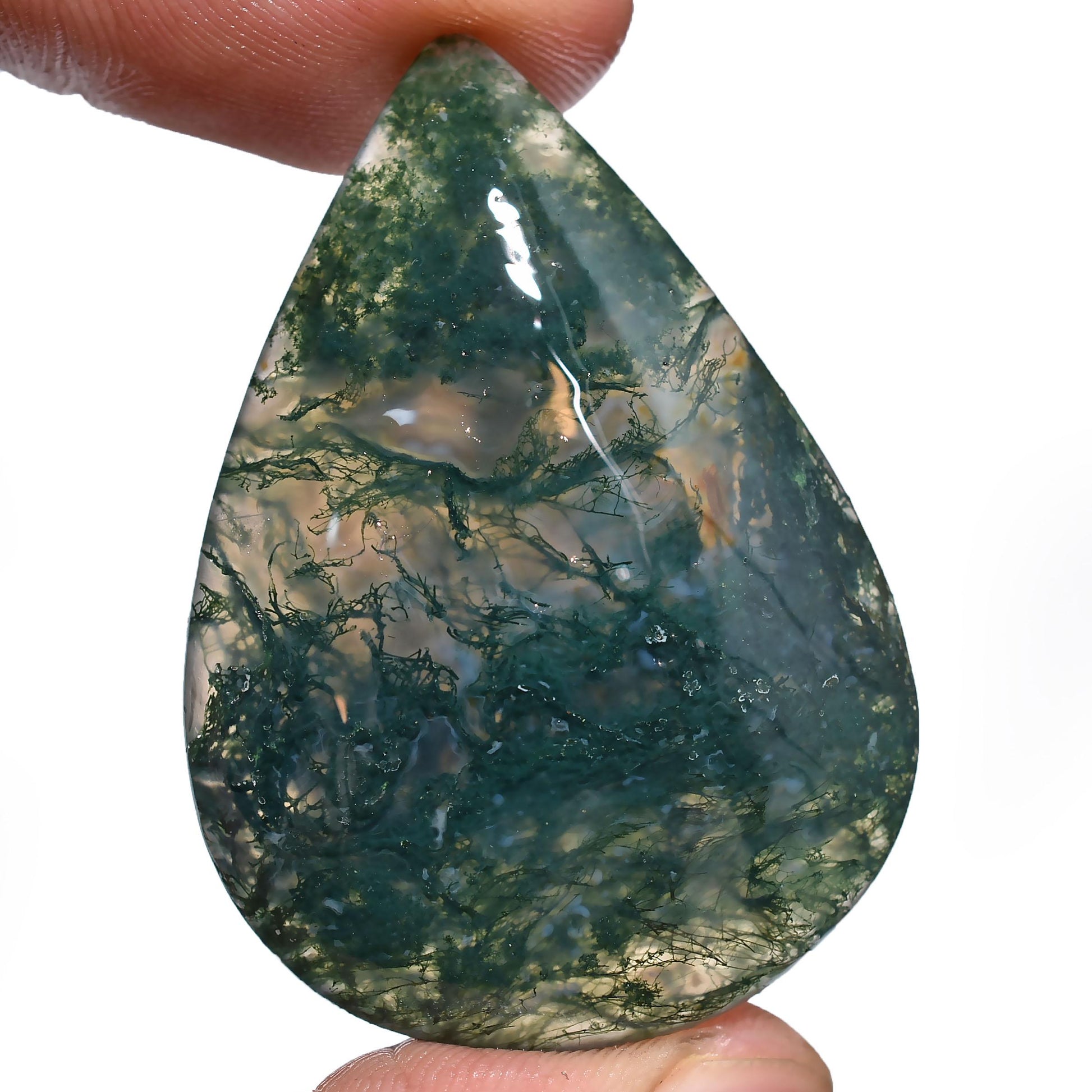 Discover high-quality Moss Agate cabochons in green oval and pear shapes. Smooth polished loose stones, perfect for pendants and DIY jewelry designs.
