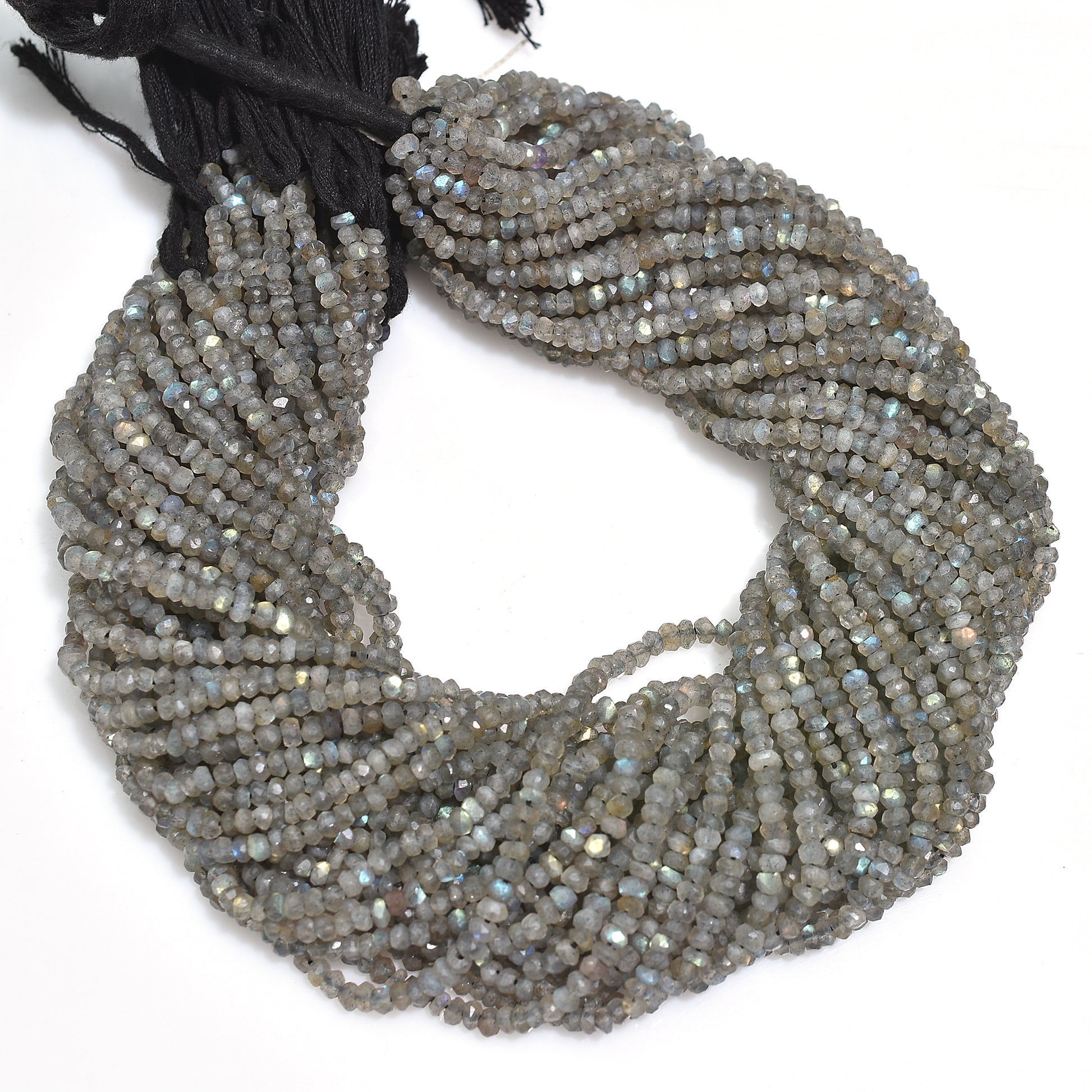 Shop 13" strand of natural Labradorite faceted rondelle beads with brilliant blue-grey flash. Ideal for high-end jewelry making and gemstone crafting projects..