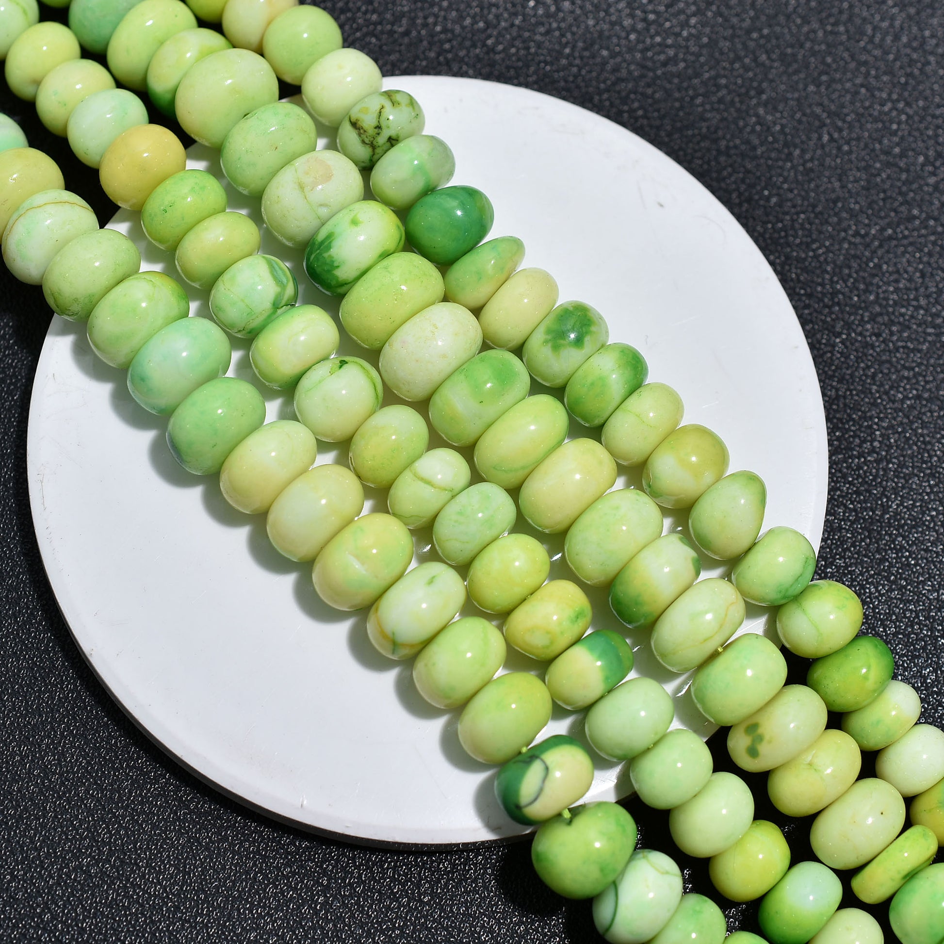 Lemon Green Opal Gemstone Beads – Smooth Rondelle 7 Inch Wholesale Strand For Jewelry Craft