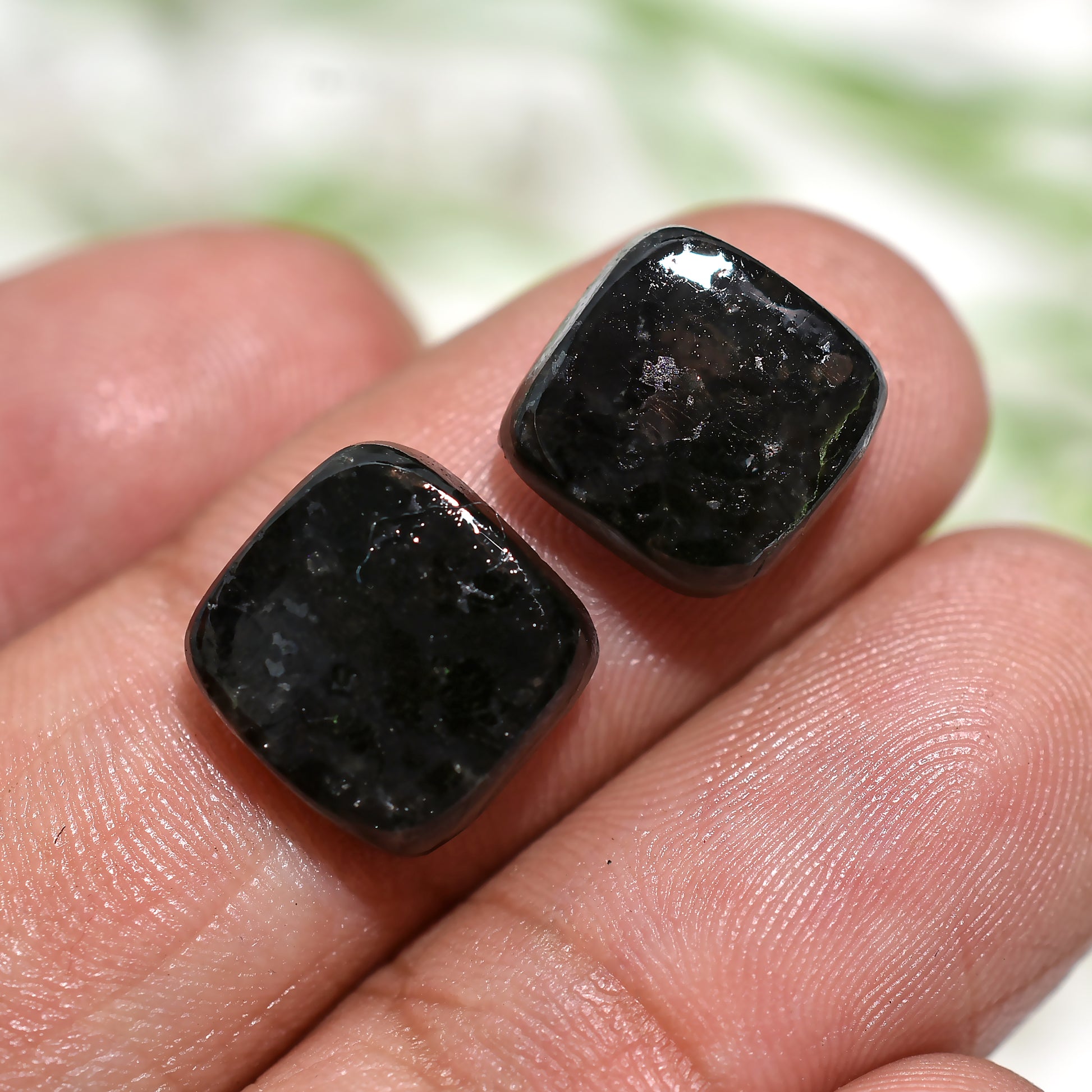 Mystic Black Nuummite Gemstone Pair – Natural Glimmer Stones for Artistic Creations