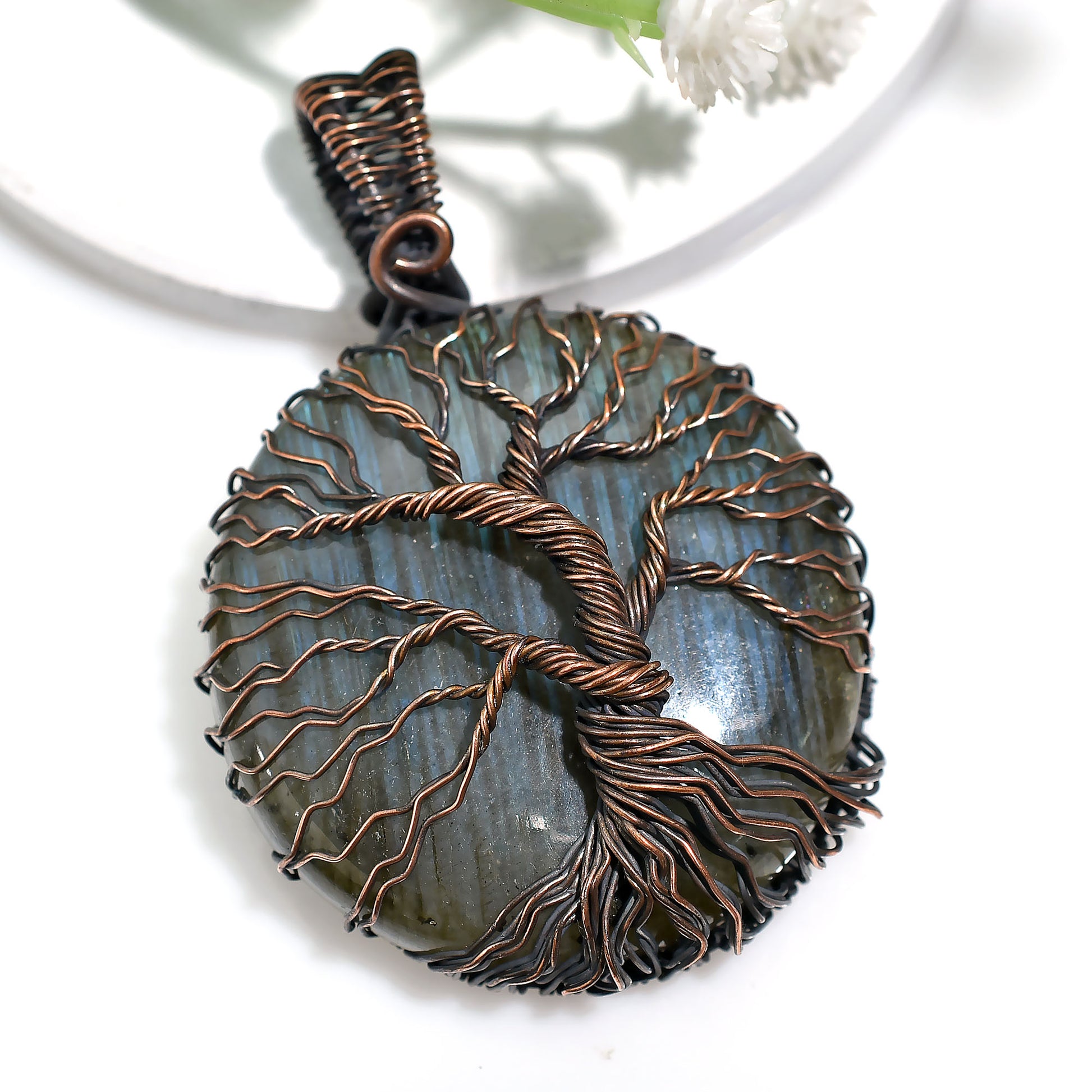 Mystic Labradorite Stone Necklace – Wholesale Wire Wrapped Copper Pendant