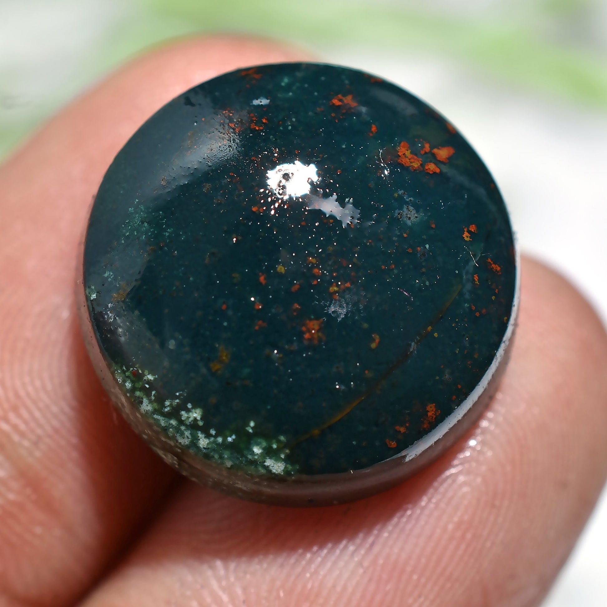 Natural Green Red Bloodstone Cabochon – Round Loose Gemstone for Rings & Pendants