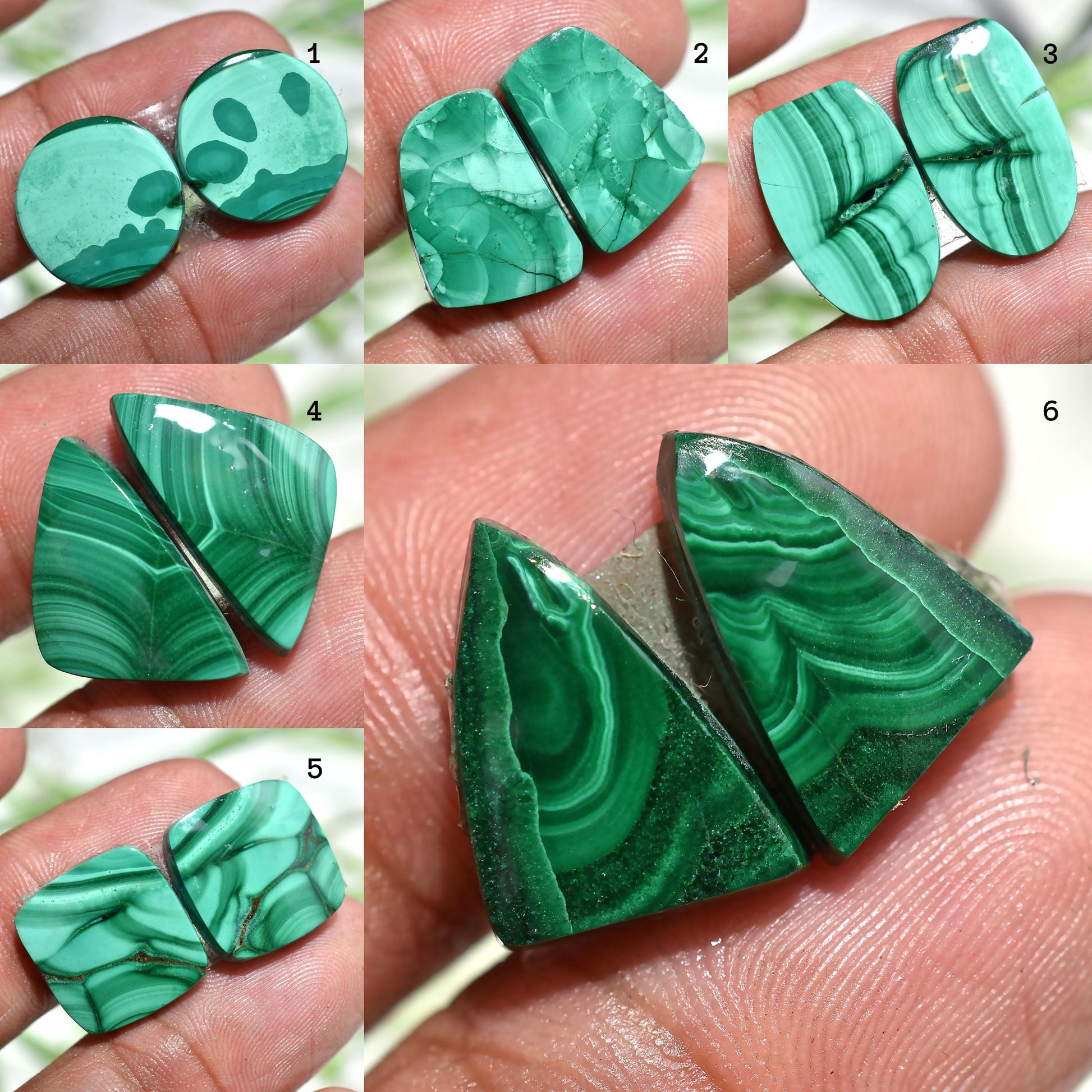 Shop a beautiful matched pair of Green Malachite gemstones in fancy shapes, perfect for custom stud earrings. These natural, loose Malachite stones are ideal for crafting unique crystal earrings.