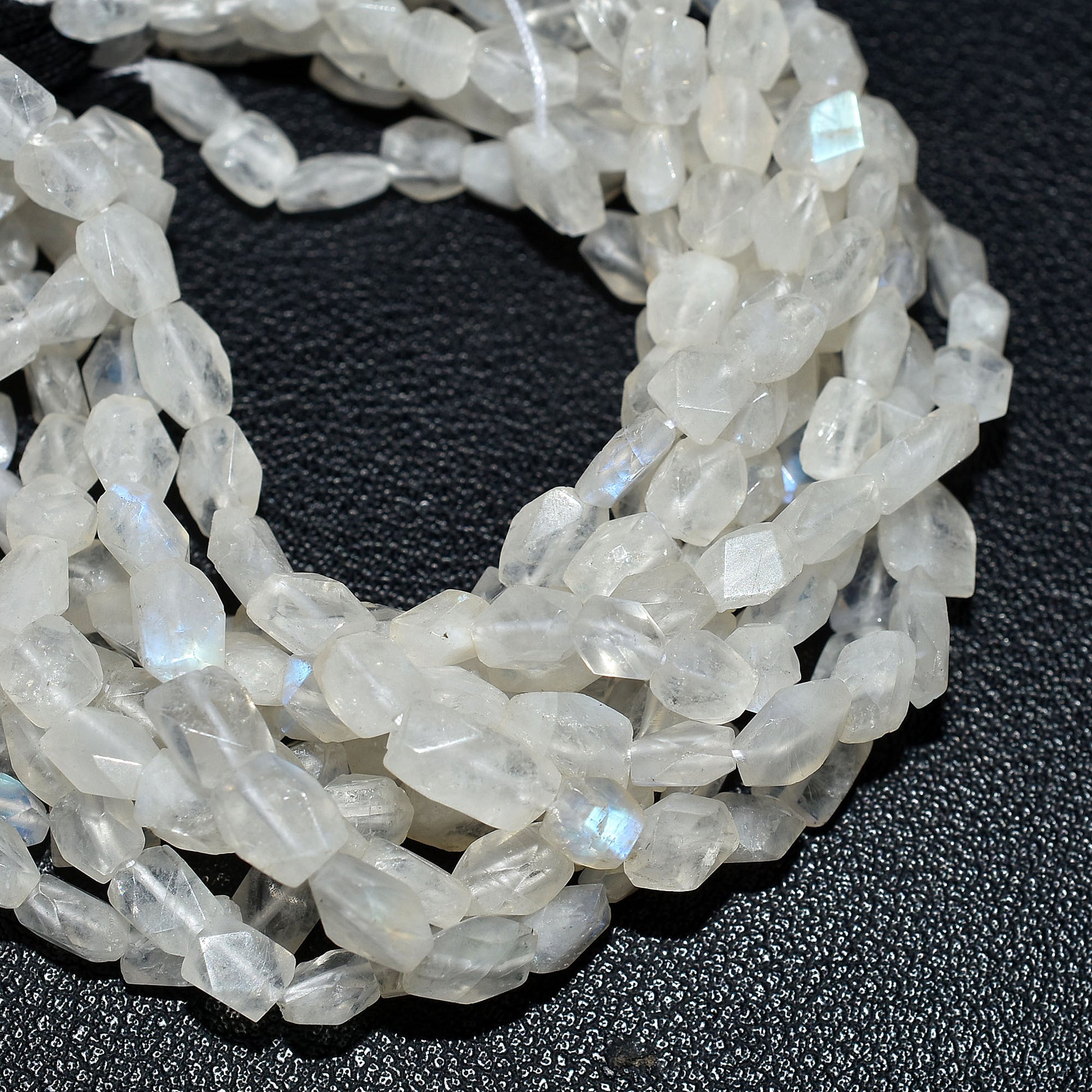 Natural Rainbow Moonstone Tiny Nugget Beads – Blue Fire Gemstone Strand