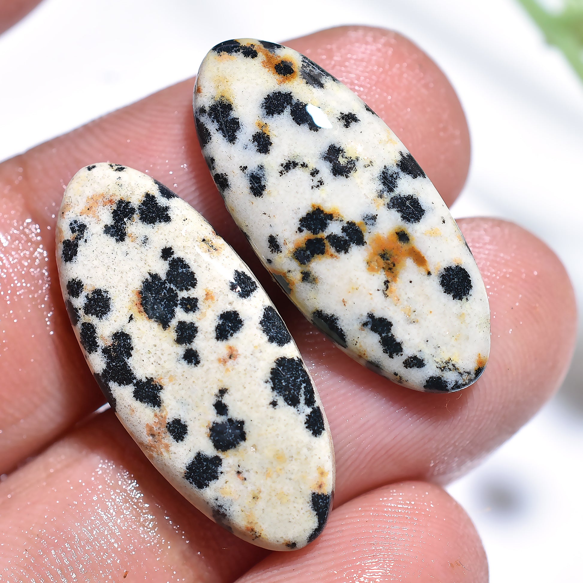 Natural Dalmatian Jasper Gemstone Pair – Smooth polished matching cabochons perfect for earrings, pendants, and handmade jewelry designs.